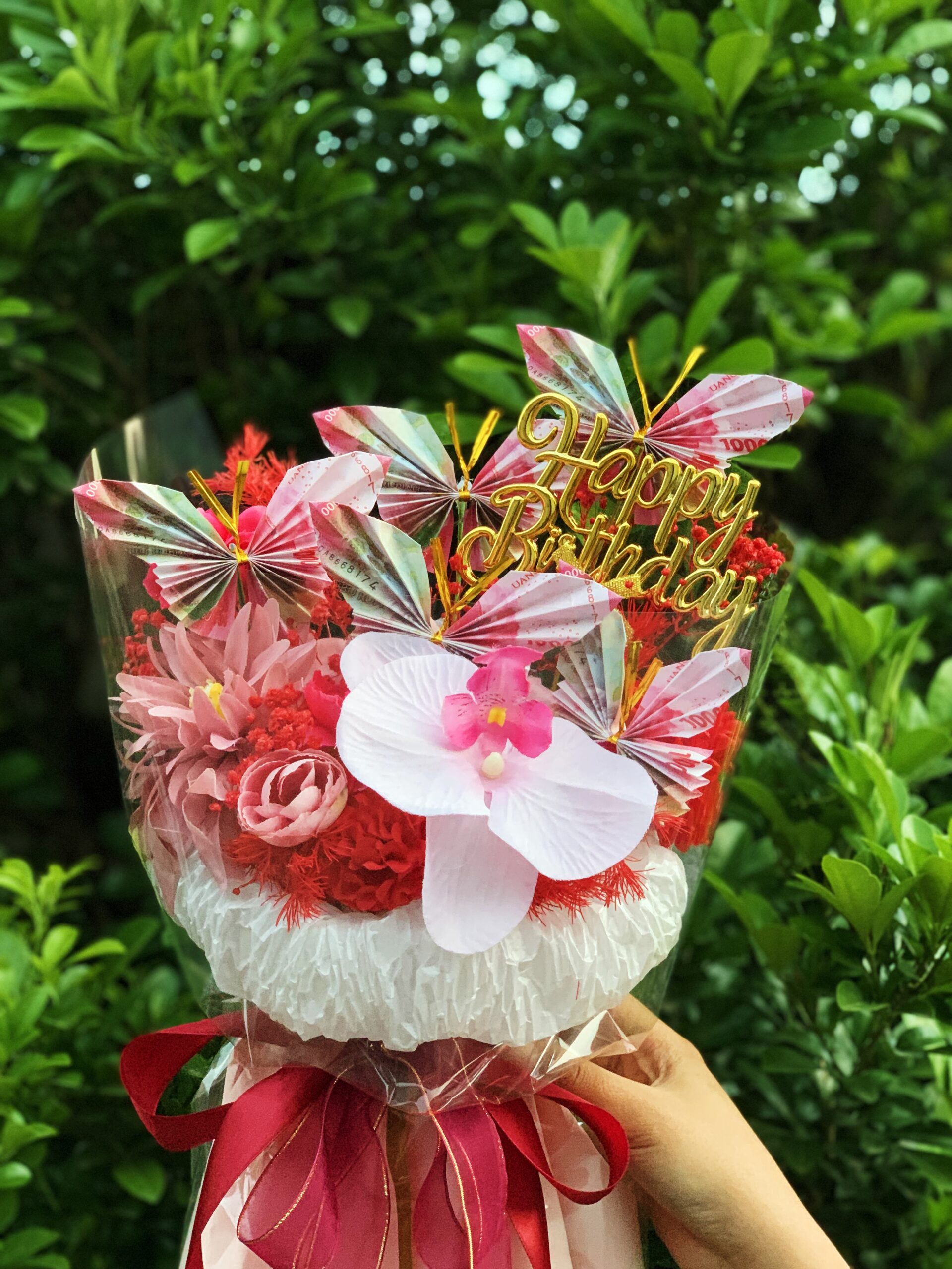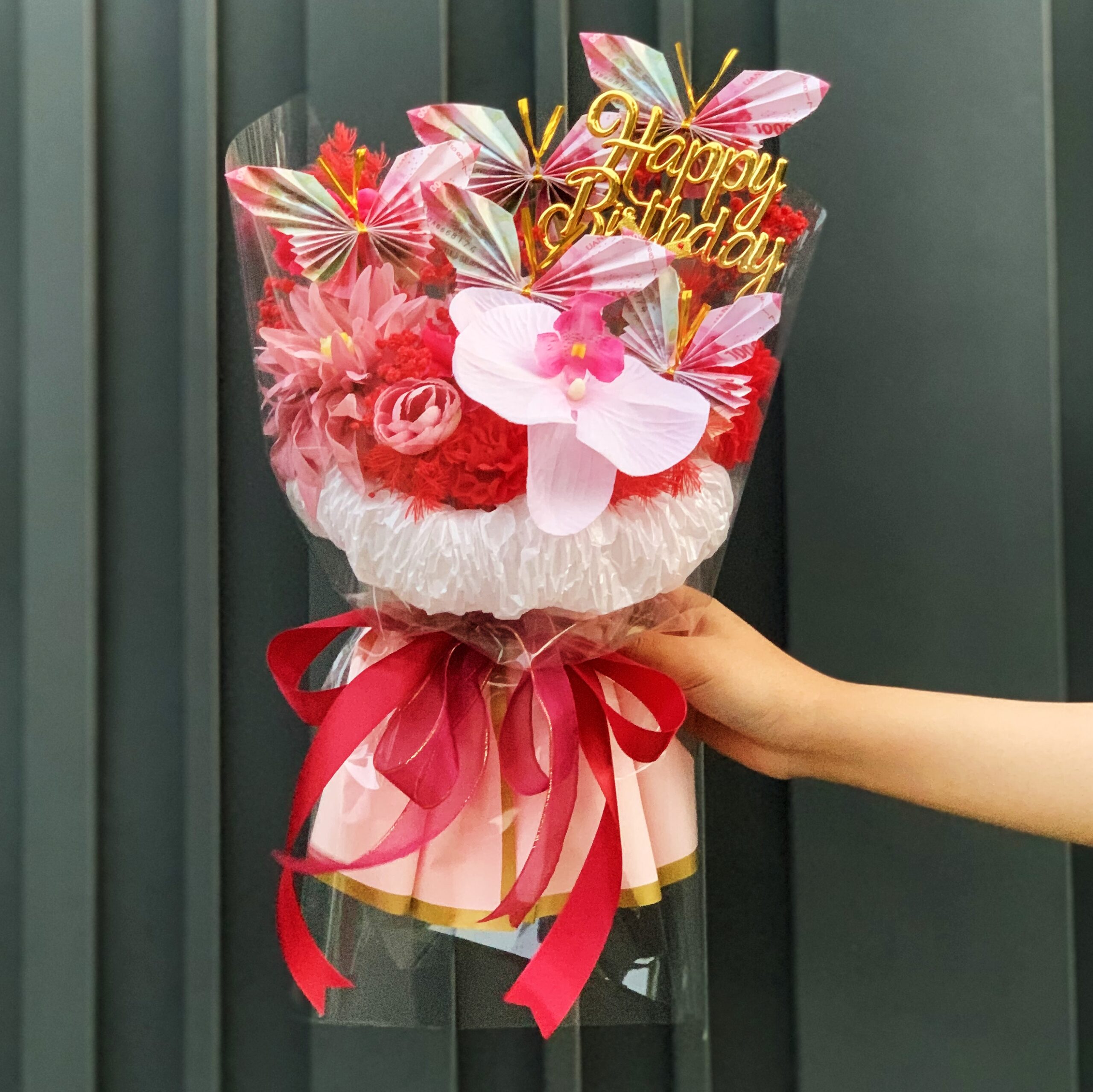 – Mix premium artificial flower (anggrek, Pompom, dan bunga pendukung lainnya)
