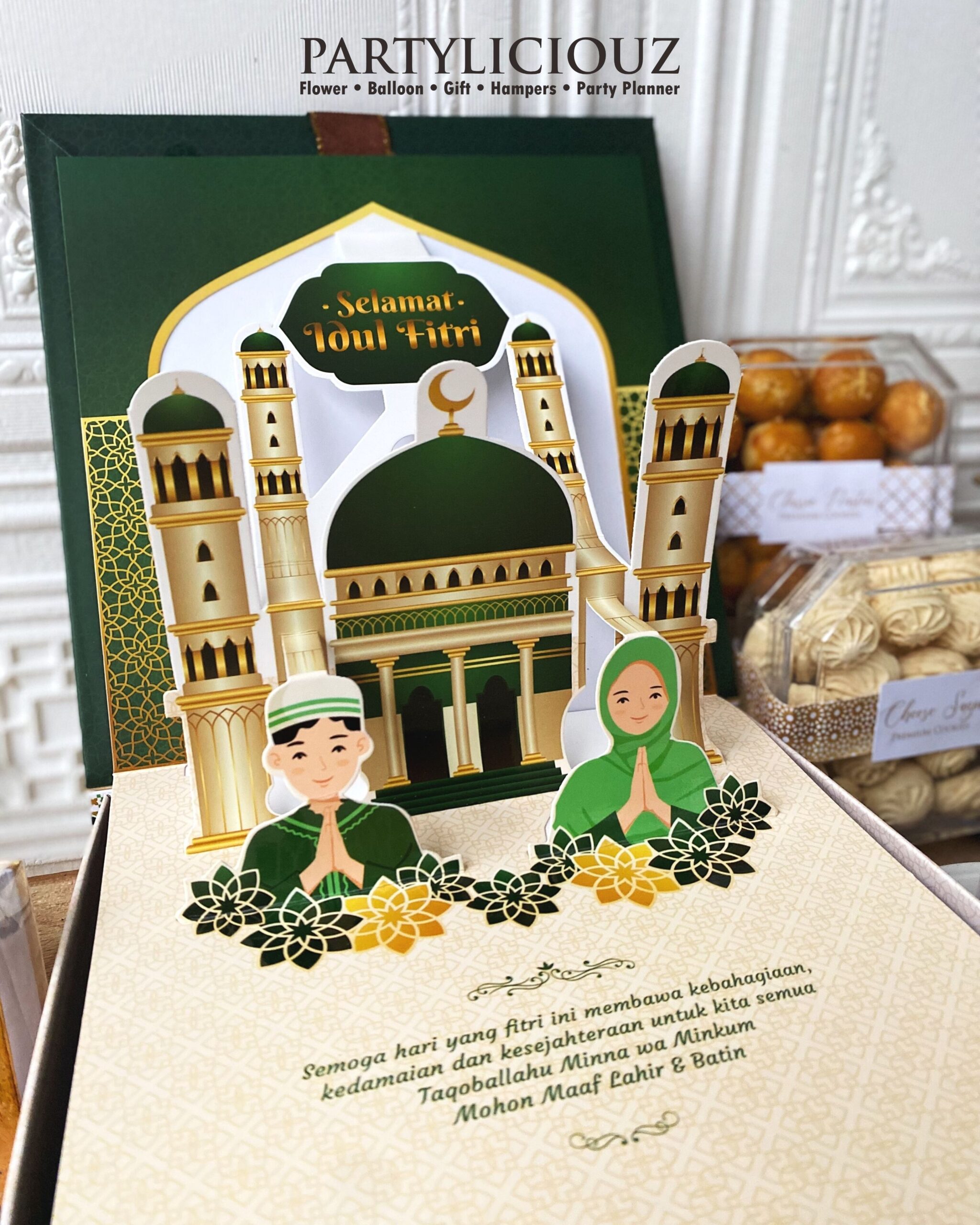Hampers Idul Fitri Eksklusif dengan Packaging Pop Out 3D yang super unik siap menemani kumpul keluarga di hari raya yang penuh ceria.