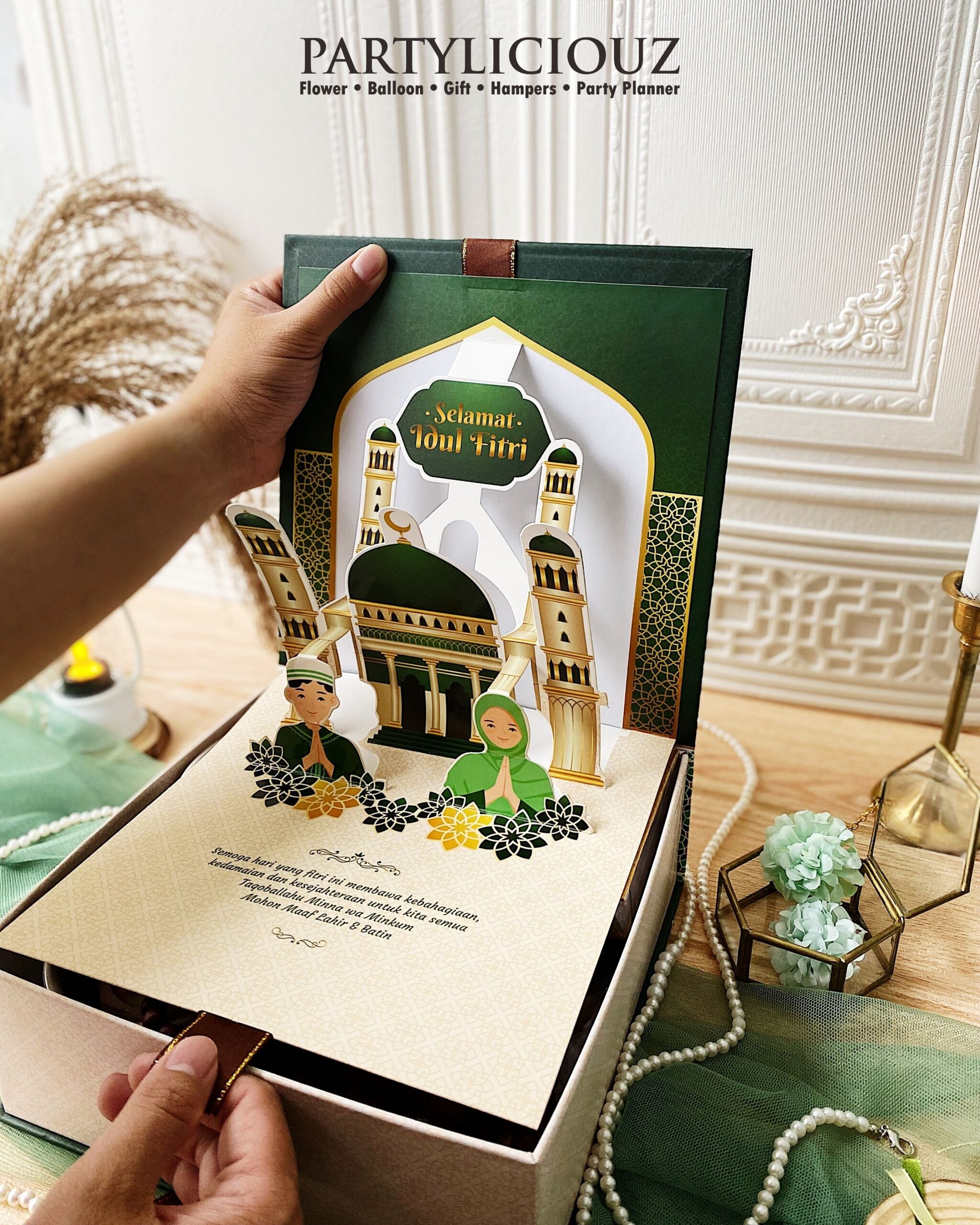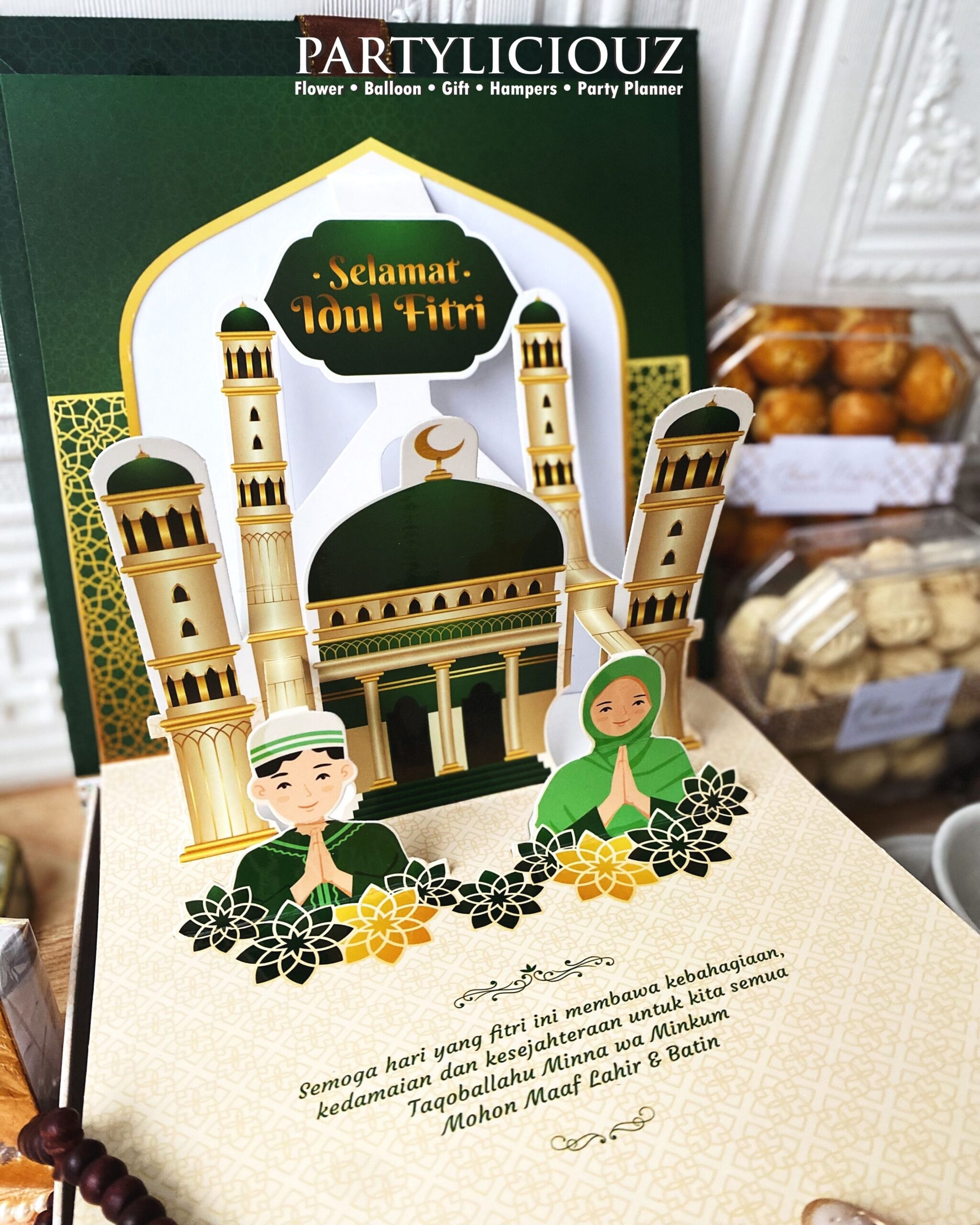 Hampers Idul Fitri Eksklusif dengan Packaging Pop Out 3D yang super unik siap menemani kumpul keluarga di hari raya yang penuh ceria.