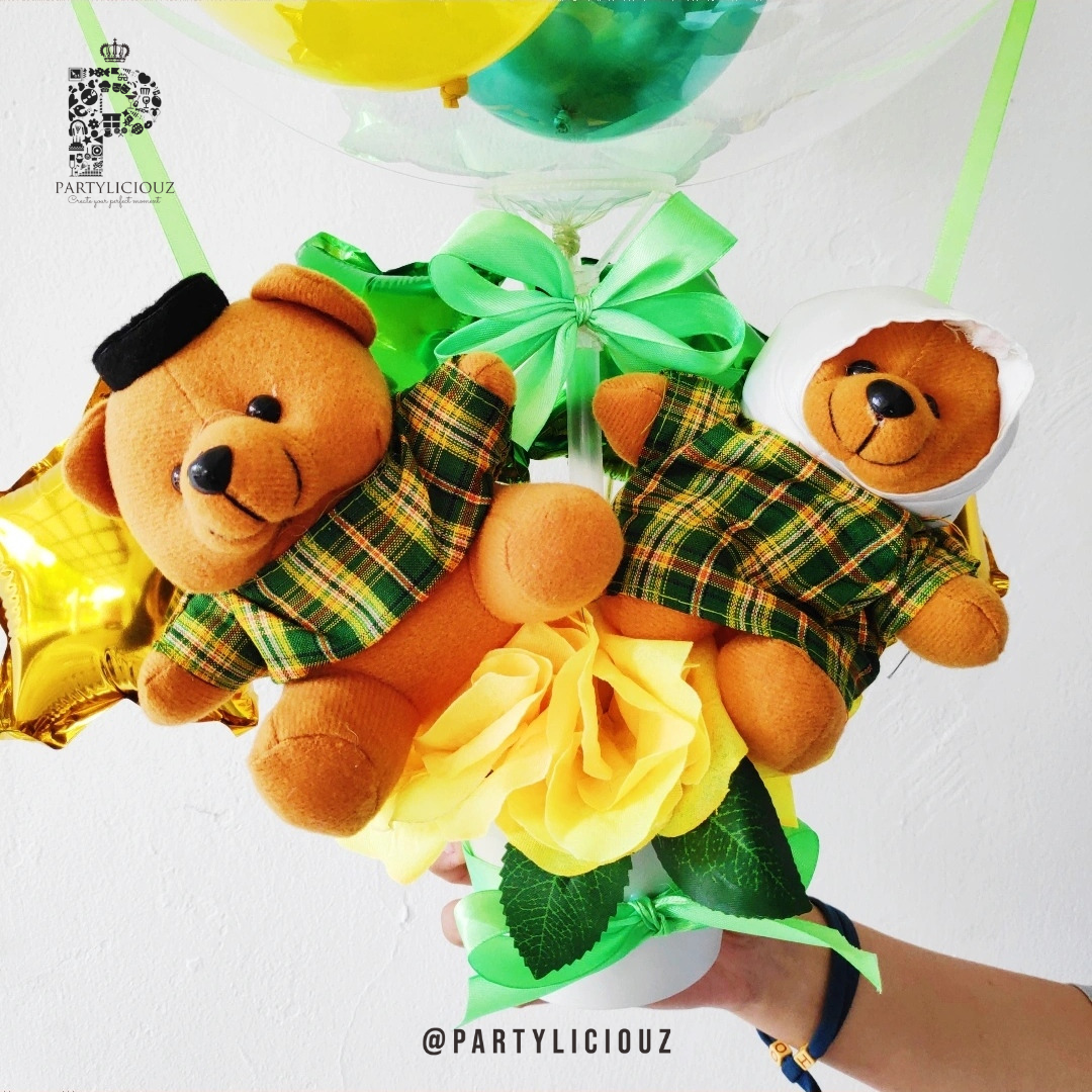 Mini Pot Rose + Dua Teddy Bear Muslim