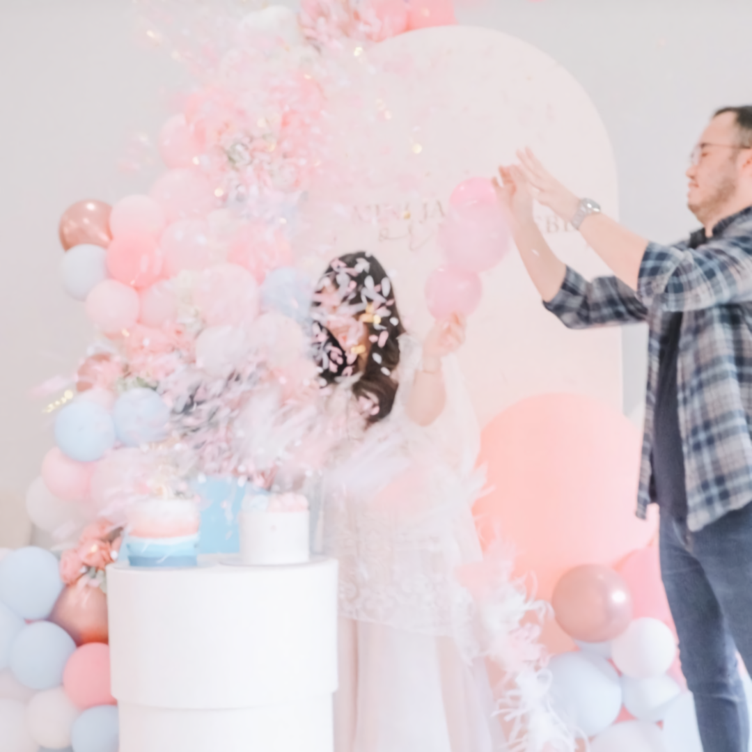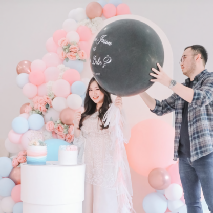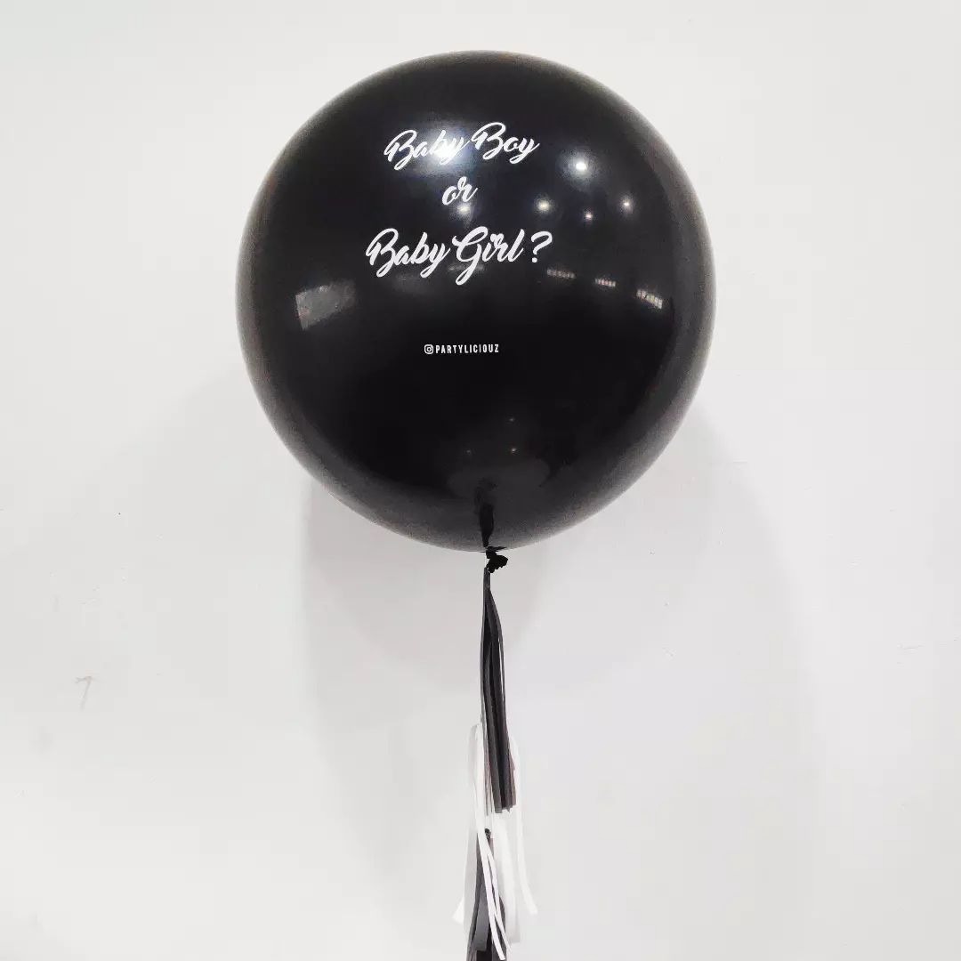 - Balon kecil isi helium di dalam balon hitam (bebas request tema baby boy/girl)