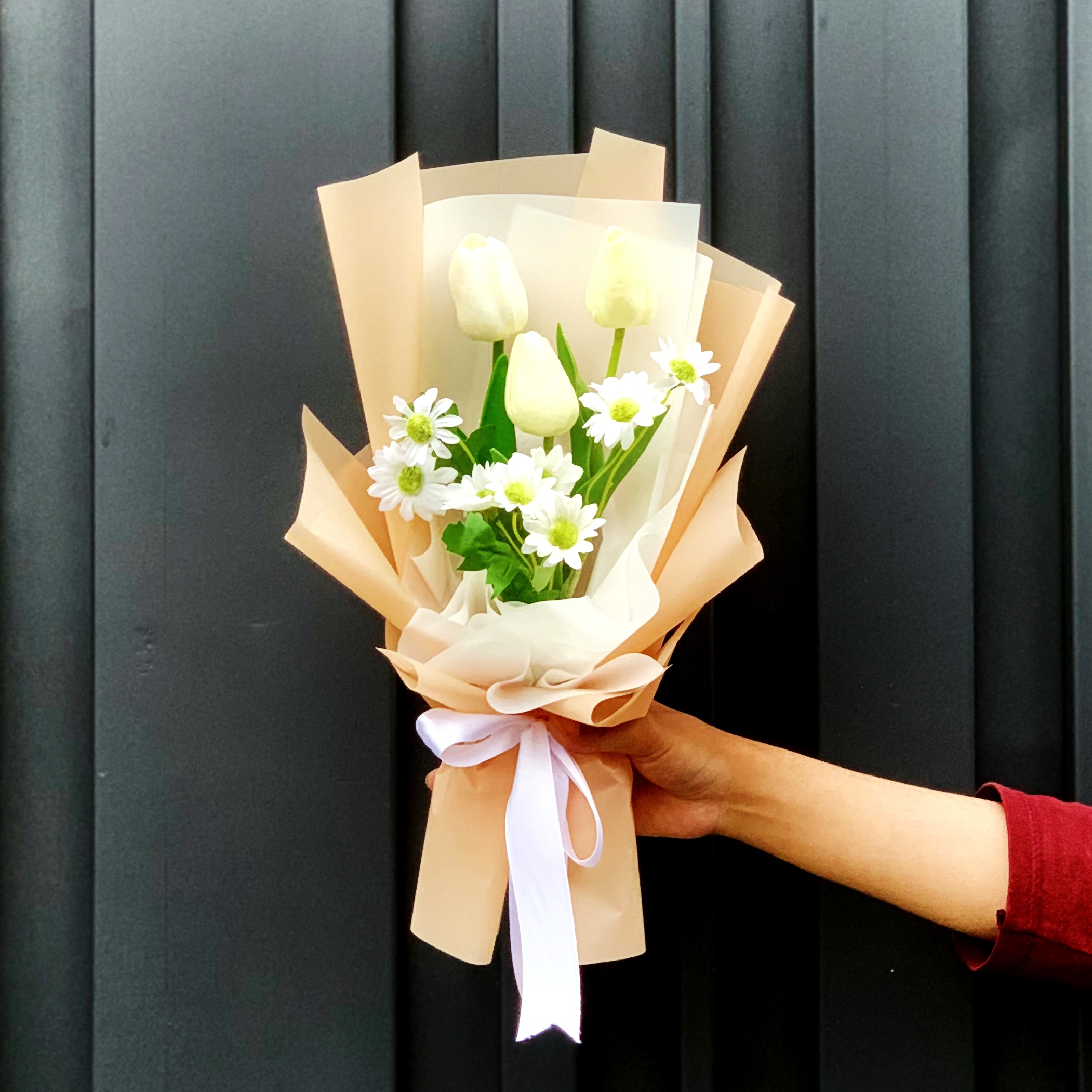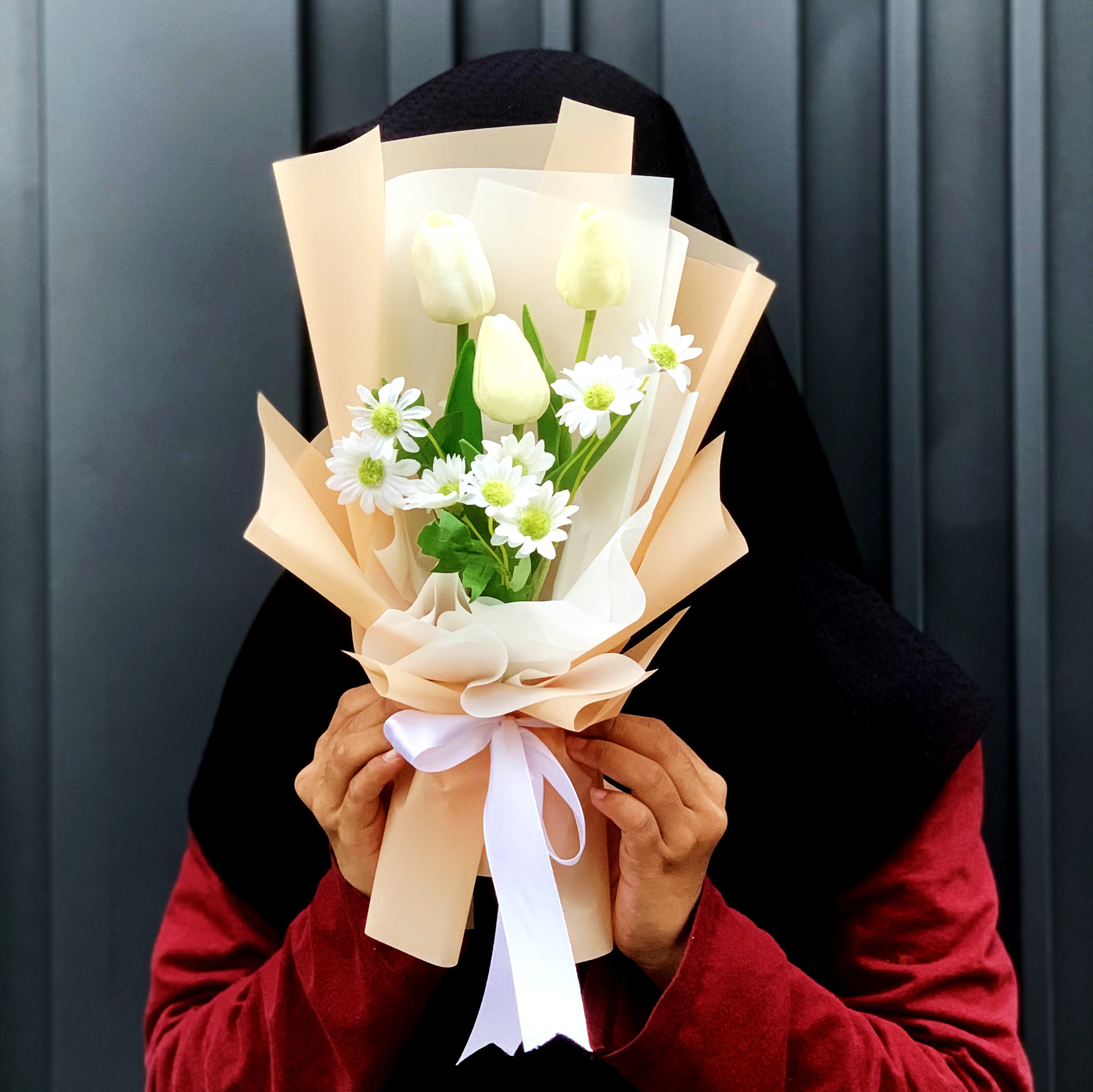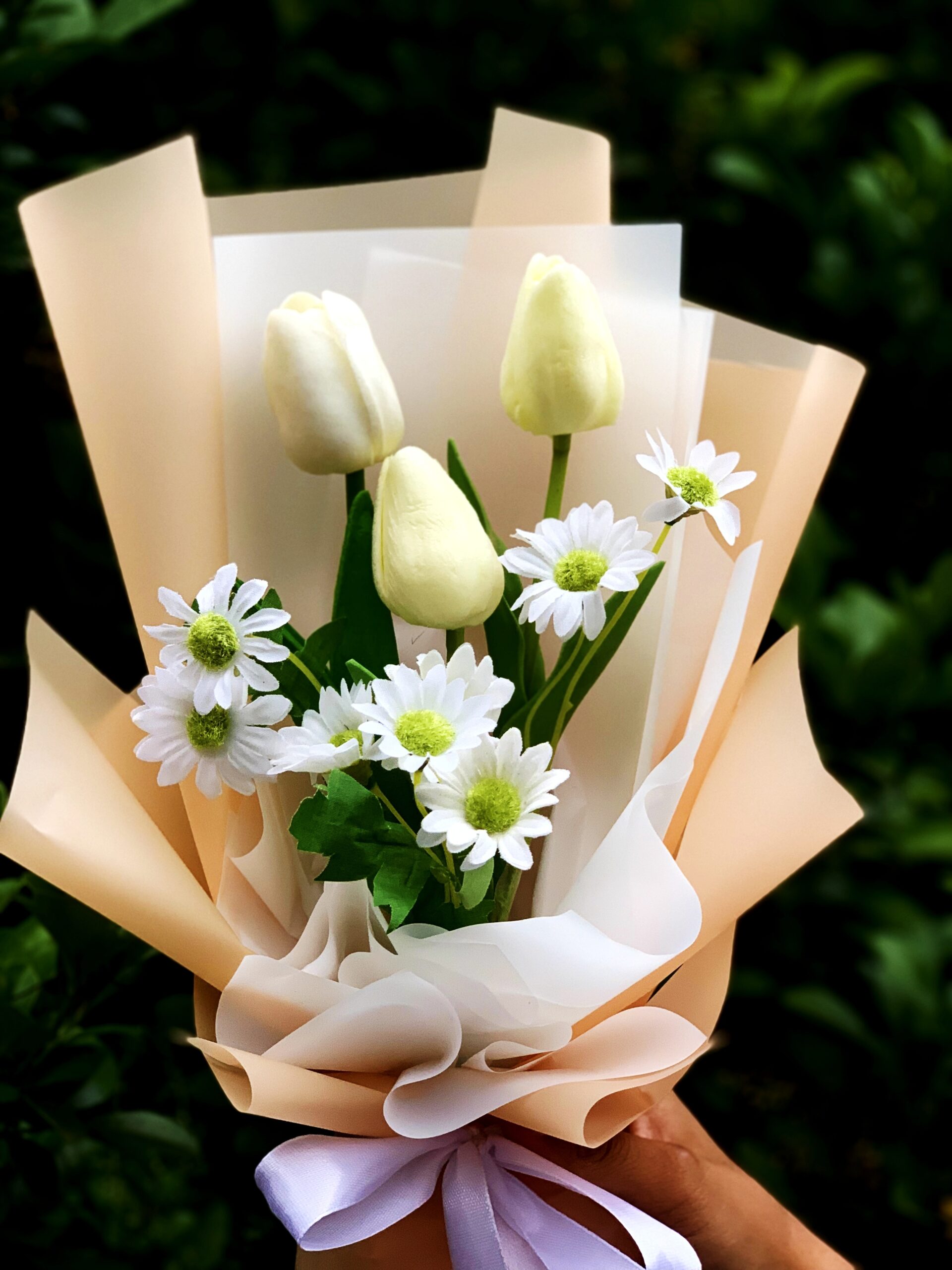 karakter Yashoda dalam mitologi Hindu menggambarkan gambaran seorang ibu yang sempurna, yang mencintai dengan tulus dan memberikan perlindungan serta bimbingan spiritual kepada anak angkatnya. Bouquet ini memancarkan kesan keindahan yang sederhana namun menawan. Dipenuhi dengan kelopak-kelopak tulip dan daisy buatan, setiap bunga terlihat hidup dan alami.